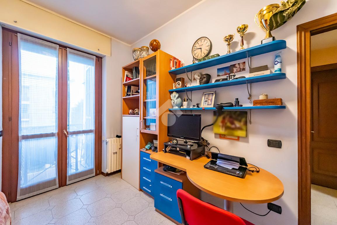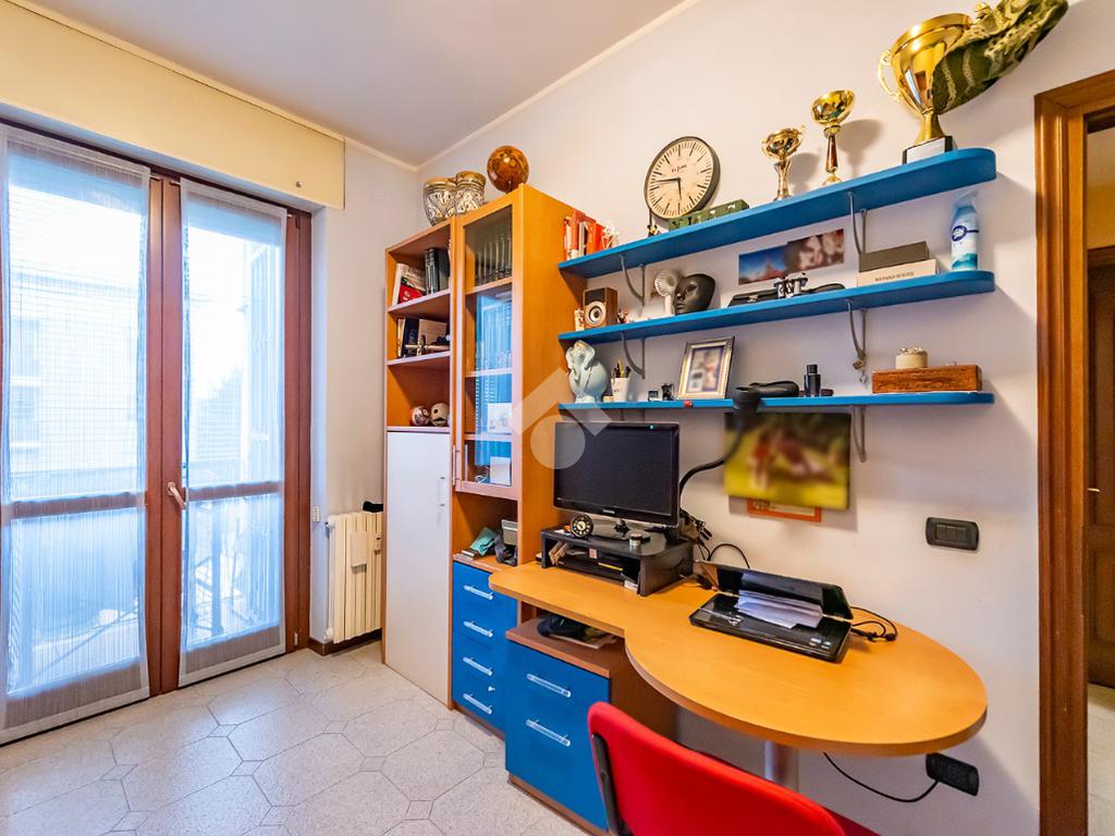 Un ripostiglio pratico completa la zona giorno, garantendo ulteriore spazio per l'organizzazione domestica. La zona notte è composta da una cameretta con balcone, ideale come stanza per bambini, studio o camera ospiti, e da una camera matrimoniale di generose dimensioni, capace di ospitare facilmente armadiature e arredi importanti. Il bagno finestrato completa la disposizione interna, assicurando luminosità e aerazione naturale.
