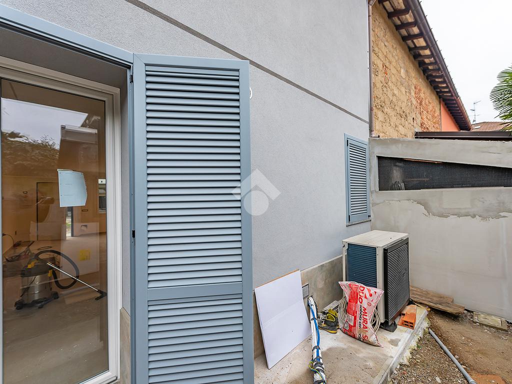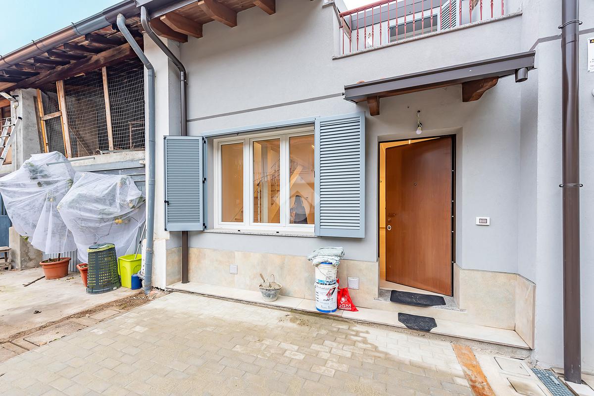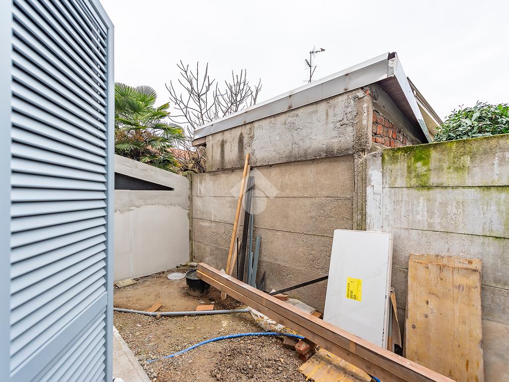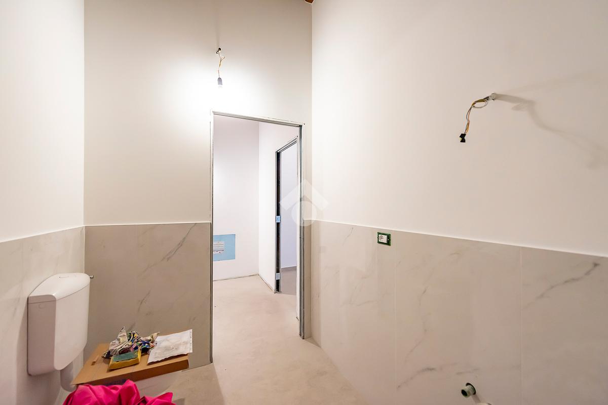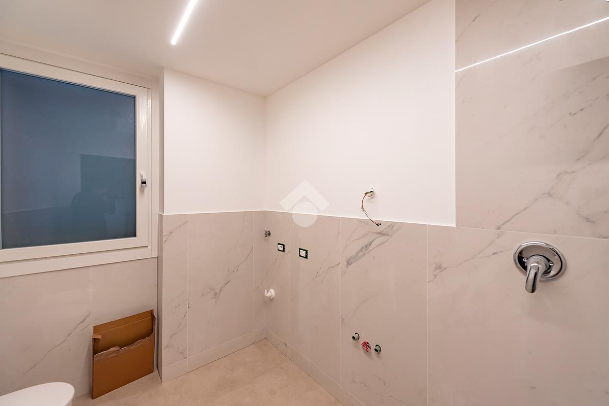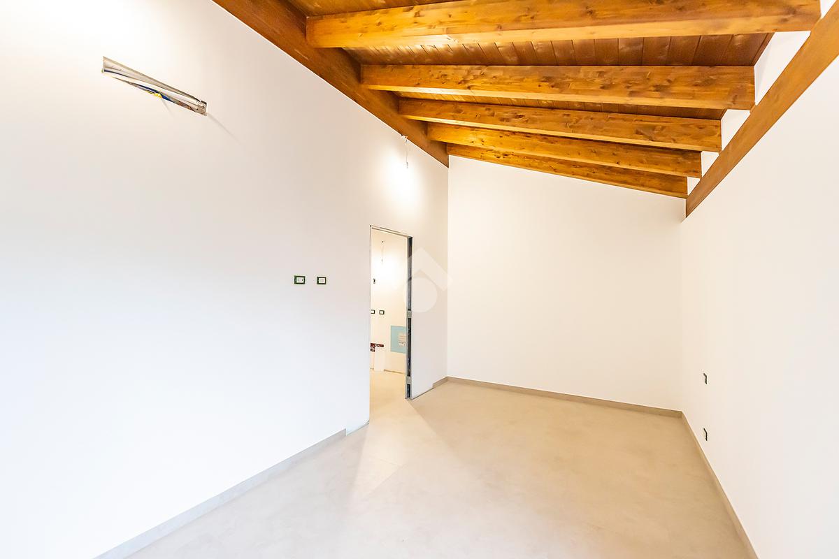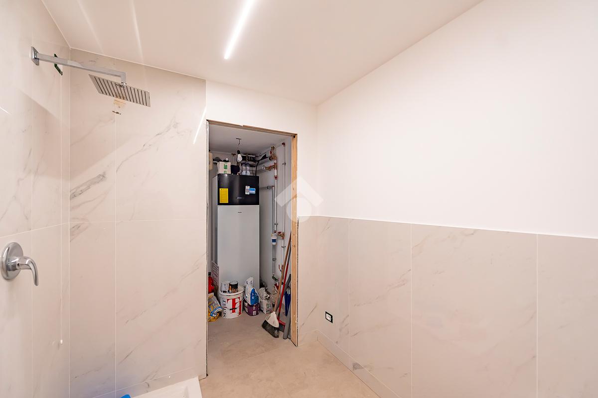L’ingresso si apre su un luminoso soggiorno con cucina a vista, uno spazio accogliente e ben distribuito, ideale per vivere la quotidianità e ricevere ospiti in un contesto elegante e contemporaneo. Dal soggiorno si accede direttamente a un comodo spazio esterno, perfetto per momenti di relax all’aria aperta, pranzi estivi o per chi ama avere un angolo verde da personalizzare. Al piano terra è presente un bagno di servizio, pratico e rifinito con materiali di qualità.