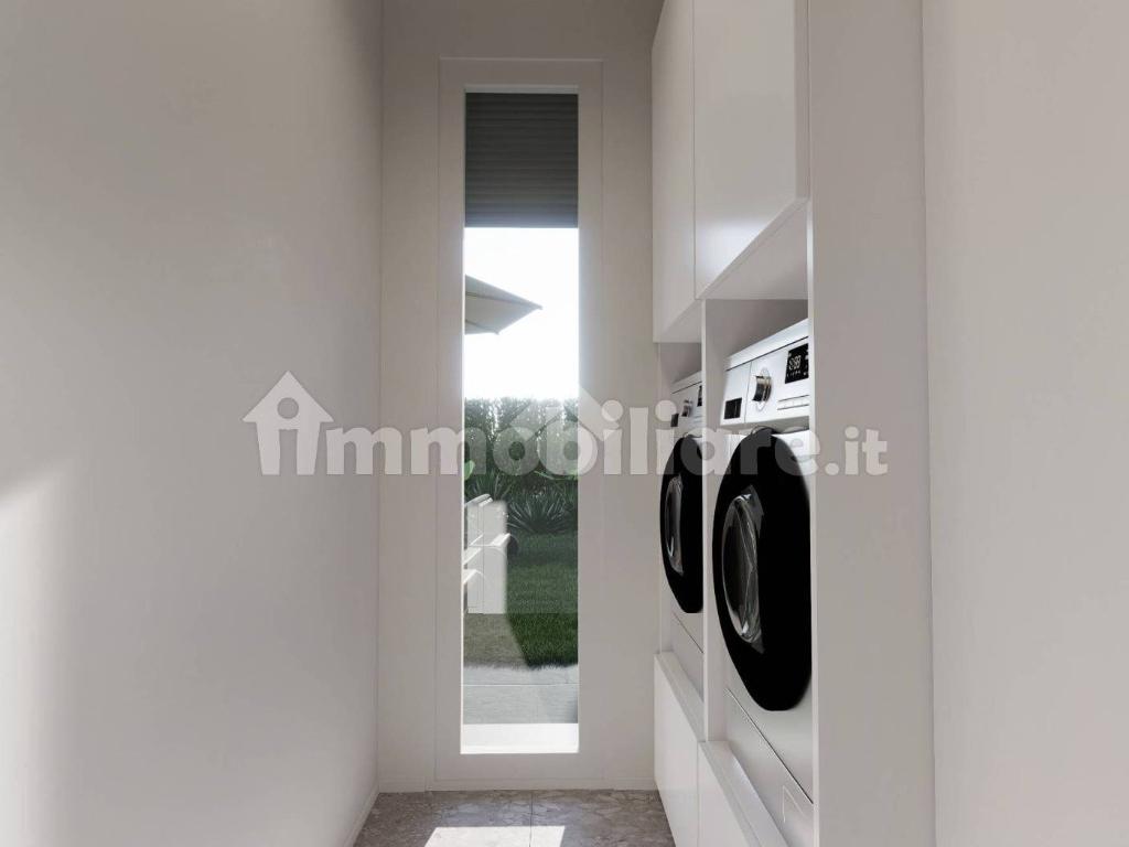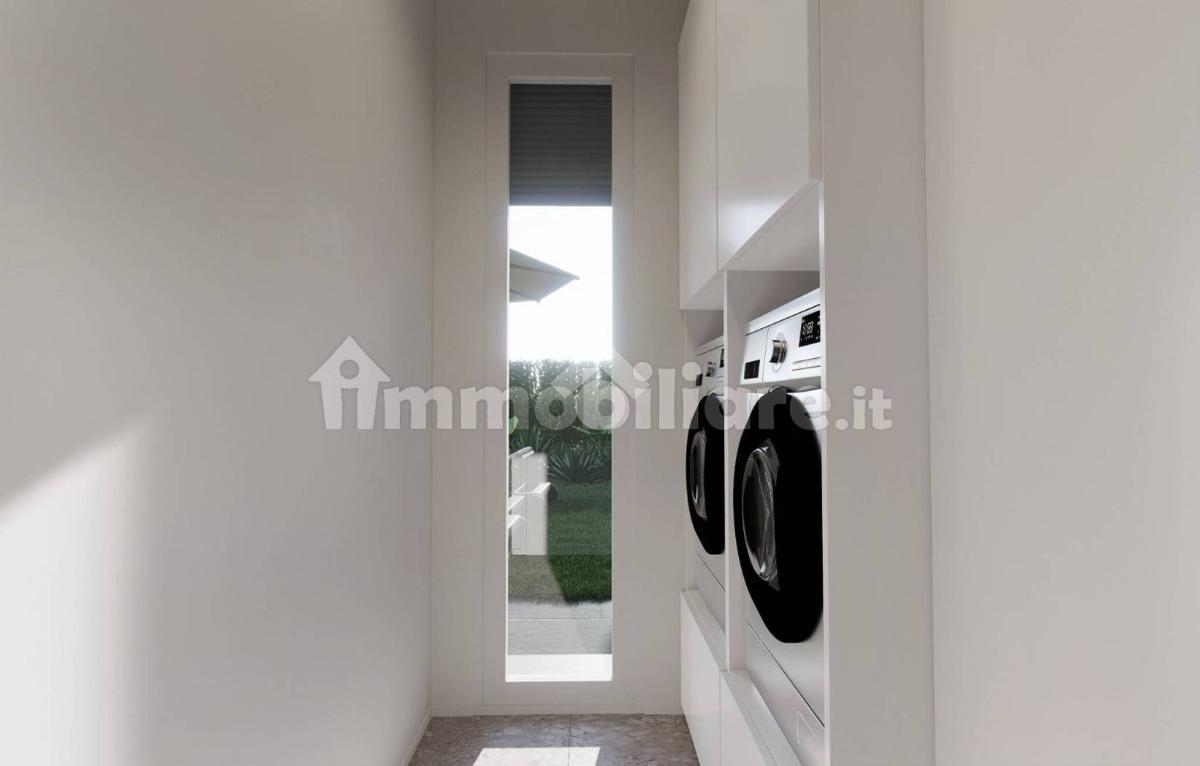 L'unità in questione, appartenente all'area B, si sviluppa su due livelli con una superficie commerciale di 156 mq. Al piano terra troviamo un'ampia e luminosa zona living con soggiorno, cucina abitabile e sala da pranzo, un bagno di servizio e una comoda lavanderia. Al piano superiore sono previste due camere da letto singole, un bagno e una spaziosa camera matrimoniale con bagno privato e cabina armadio. La villa è circondata da un giardino di circa 60 mq, dove è possibile realizzare ampia piscina. Completa la proprietà box doppio da cui si accede al piano terra.